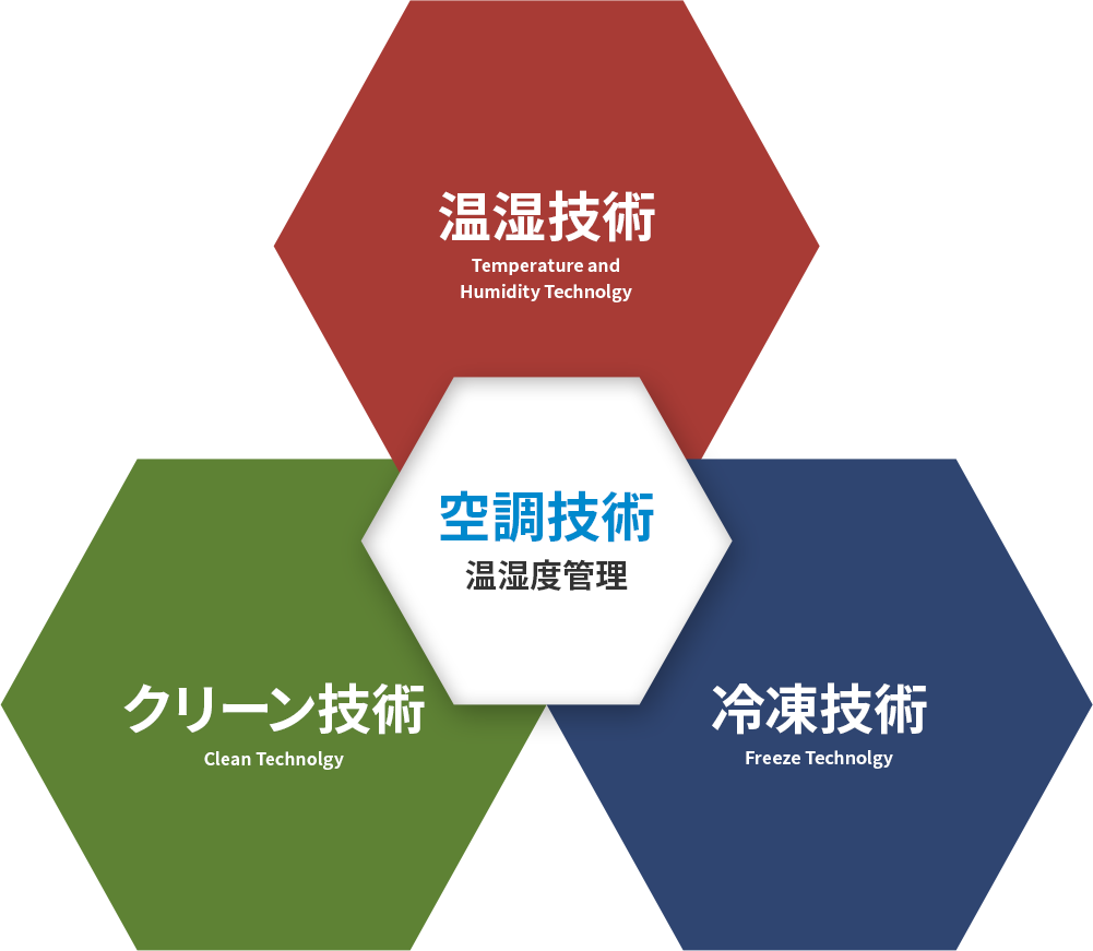 弊社は、クリーン技術と冷凍回路技術を活用し、エアシャワー、パスボックスをはじめとするクリーン機器や人の健康に配慮した感染症対策製品であるセーフティパーティションや陰圧ユニット、冷媒のノンフロン化やインバータ制御・排熱利用による省エネ化を進めた環境配慮型の冷熱機器、そしてそれらを融合した空調機器等の開発・製造・販売を手掛けております。